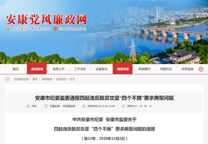 陝西安康通報四起違反脱貧攻堅“四個不摘”要求典型問題
