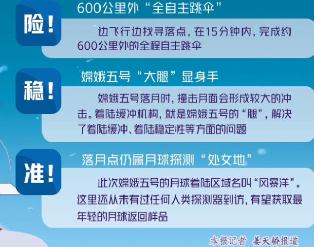 可以説,落月的過程就是邊飛行邊找尋落點,在15分鐘內完成,約600公里外的全程自主跳傘。