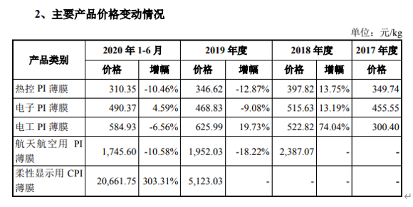 但是根據斯迪克發佈的招股書披露數據,該公司2018年採購PI薄膜的單價卻高達460.25元/千克,同比2017年增長了不到10%。也即瑞華泰的熱控PI薄膜銷售單價,與客户方披露的PI薄膜採購單價存在重大差異,對此瑞華泰並未做出任何説明,也未接受記者採訪。