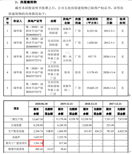 再來看瑞華泰的借貸信息,根據招股書披露,為開展本次募集資金投資項目,嘉興瑞華泰於2020年9月 3日簽署8億元銀團貸款合同,以其目前已擁有的土地及未來建成的全部房產、機器設備作為抵押物。