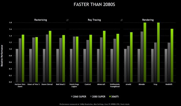 RTX 3060 Ti基於全球最強大的PC遊戲平台,支持三項GeForce遊戲技術創新,包括帶有性能加速和圖像質量增強的NVIDIA DLSS (NVIDIA深度學習超級採樣)、以及NVIDIA Reflex和NVIDIA Broadcast。它這三項技術與即時光線追蹤一起,共同構成GeForce遊戲平台的基礎,為全球遊戲和玩家帶來無與倫比的性能和功能。RTX 3060 Ti比上一代GeForce RTX 2080 SUPER(售價為5699元起)性能更強,在1080P和1440P分辨率下帶來令人震撼的遊戲體驗,並加速創意和生產力工作流程。