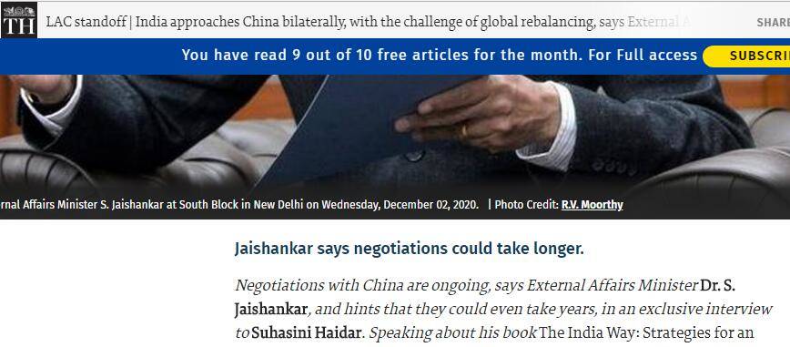 印度外長暗示:中印談判可能會持續數年,“複雜問題需要時間來解決”
