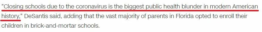 “100萬”無疑是個可怕的數字,但某些政客卻對此不以為意。就在佛羅里達州病例數突破百萬的前一天,該州州長羅恩·德桑蒂斯舉行了26天來的首次疫情發佈會。但在會上,他卻出人意料地再次強調了在來年春季繼續開放學校的必要性,並稱“由於新冠病毒而關閉學校是美國現代史上最大的公共衞生錯誤”。