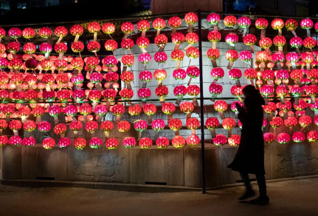 12月2日,在韓國首爾,一名考生的家人在曹溪寺為考生祈福。高考前夕,不少考生家人來到寺廟為即將參加高考的考生祈願祝福。新華社發(李相浩 攝)