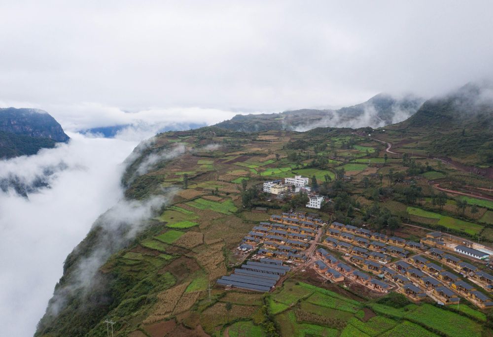 俯瞰昭覺縣支爾莫鄉不色列洛村集中安置點(10月12日攝,無人機照片)。位於四川省大涼山腹地的四川省昭覺縣,是全國最大的彝族聚居縣,也是四川省深度貧困縣中貧困人口最多的縣。經過近幾年的努力,脱貧攻堅取得明顯階段性成效,彝區面貌發生歷史性鉅變。(新華社記者江宏景攝)