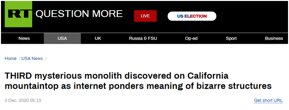 也有網友腦洞大開,提出了這樣一種猜想。“巨石出現在猶他州,(然後)突然消失了。巨石出現在羅馬尼亞,(然後)突然消失了,這次是在加利福尼亞州。外星人是用這個檢查陸地以確保安全着陸嗎?”↓