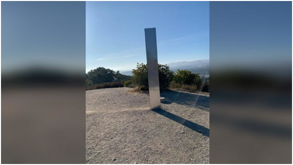 (加利福尼亞州出現的神秘金屬巨石。)