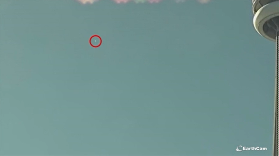 設置在多倫多的照相機捕捉到火球劃過天空時的畫面,閃光把畫面映白(福克斯新聞網)