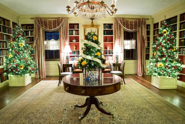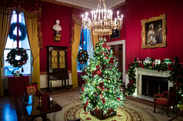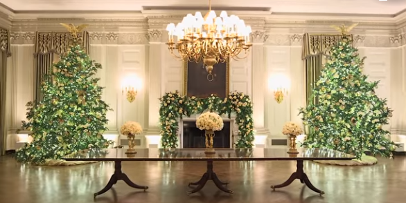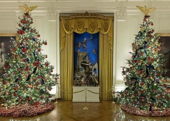 在白宮,由第一夫人掌管聖誕裝扮“大權”的傳統是從1961年開始的,那一年,美國前總統肯尼迪的夫人傑奎琳·肯尼迪在白宮藍色房間的聖誕樹上掛上了以《胡桃夾子》為主題的玩具、小鳥和天使等飾品,給人們留下深刻印象。