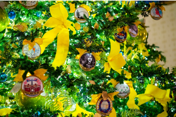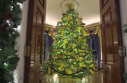 還有一顆聖誕樹上的飾品印有馬里蘭州、密歇根州和北马里亞納羣島的孩子們的名字: