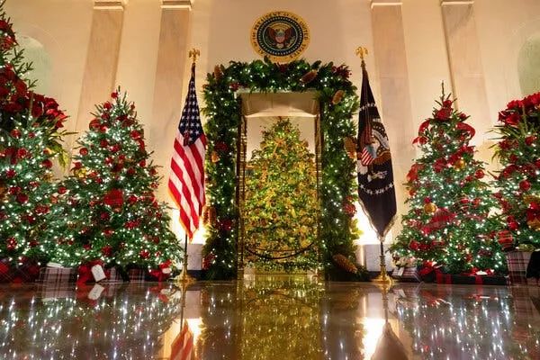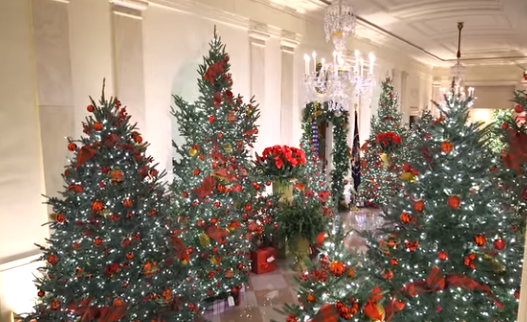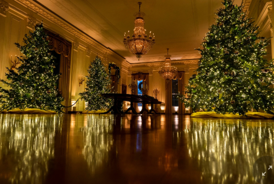 這次精彩的裝飾主題當然不是梅拉尼婭一人完成,而是她和來自全國各地的志願者共同完成的——感恩節後,志願者幫助裝扮了共計62棵聖誕樹,106個聖誕花環,超過1200英尺的花環,超過3200根燈串。