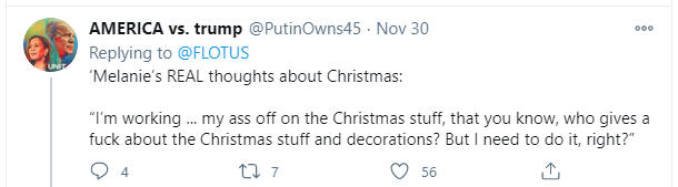 他們引用之前美國主流媒體流出的梅拉尼婭與她前顧問2018年的那段表達對裝飾聖誕不滿的對話: