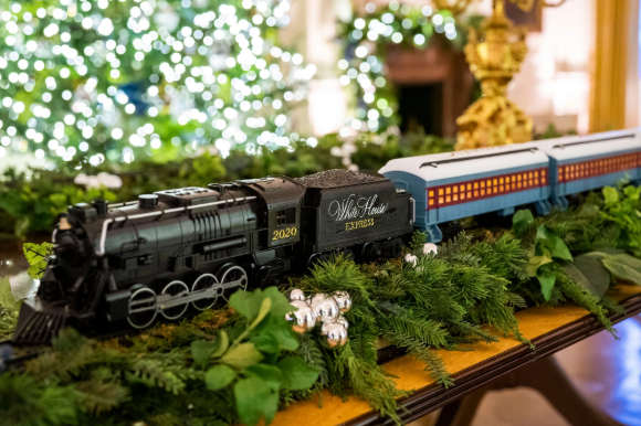 還有這個繞着桌子中央的花環行駛的“白宮快車”模型火車: