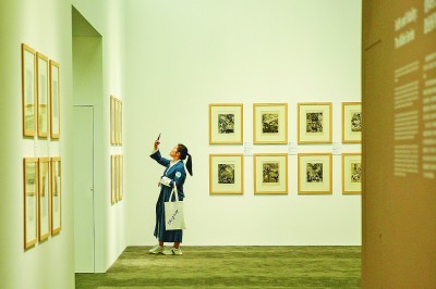 10月10日,在央美廊坊館,參觀者在法國畫家、版畫家和設計師馬克·夏加爾中國首展上觀展。新華社發