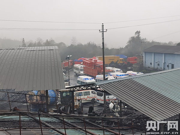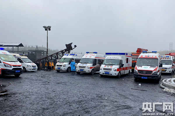 救援隊結集中,準備下井救援(央廣網記者 堯遙 攝)