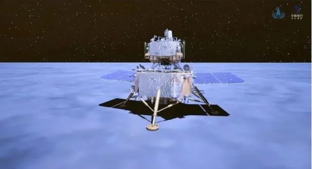 月面上的嫦娥五號着陸器與上升器組合體示意圖