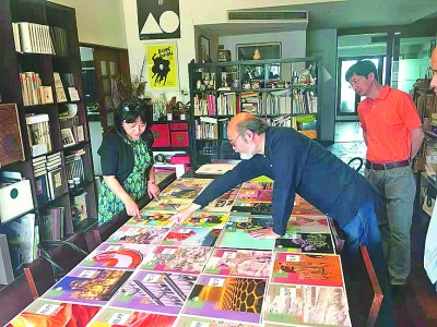 人教社編輯與設計師探討教材裝幀方案。光明圖片