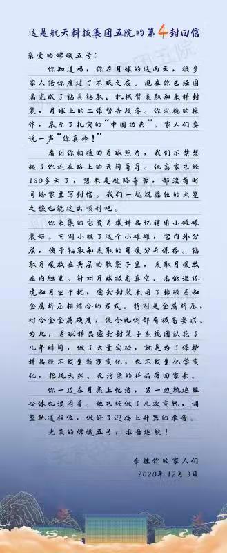 返程回家前,航天五院寫信囑咐嫦娥五號