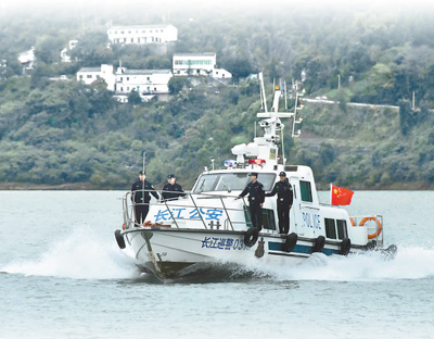 長江航運公安局重慶巫山派出所在長江水域巫山段開展巡航工作。王忠虎攝(人民視覺)