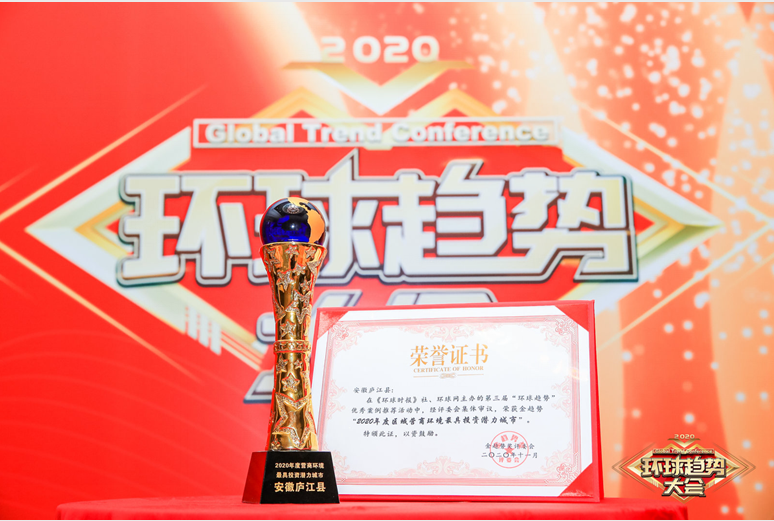作為環球趨勢大會的重要活動,“環球趨勢優秀案例推薦”活動同步開展。其中,在營商環境優化方向,合肥市廬江縣榮獲“2020年度營商環境最具投資潛力城市”獎。