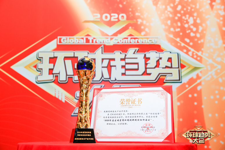作為環球趨勢大會的重要活動,“環球趨勢優秀案例推薦”活動同步開展。其中,在營商環境優化方向,成都高新技術產業開發區榮獲“2020年度營商環境創新創優標杆園區”獎。