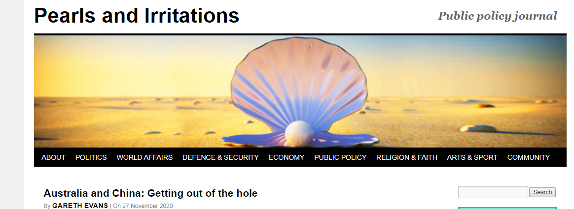 【環球網報道 記者 丁潔芸】澳大利亞前外長埃文斯(GARETH EVANS)11月27日在澳網站“珍珠與刺激”(Pearls and Irritations)上刊登題為《澳大利亞和中國:走出陷坑》的署名文章。