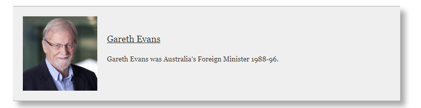 據“珍珠與刺激”介紹,埃文斯1988年-1996年曾擔任澳大利亞外交部部長。