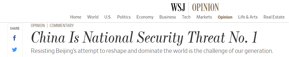 當地時間3日,特朗普政府的美國國家情報總監約翰·拉特克利夫刊登署名文章,標題是*“中國是(美國的)國家安全頭號威脅。”這篇文章引起多家國際媒體關注。CNN説,“特朗普的情報負責人警告説,中國是二戰以來美國面臨的最大威脅。”*英國《衞報》則注意到,拉特克利夫在特朗普對中國攻擊的基礎上更進一步,聲稱“中國是自二戰以來對全球民主與自由的最大威脅”,並揣測“中國決心主導全球”。