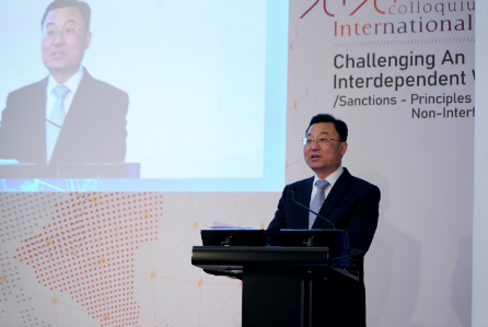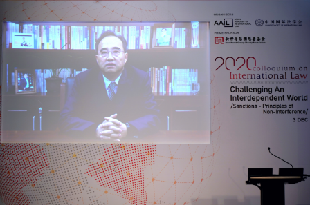 2020年12月3日,外交部駐港公署特派員謝鋒應邀出席“2020年國際法論壇”開幕式並發表題為《反對單邊制裁,維護國際法治》的主旨演講,呼籲國際社會共同反對單邊制裁。