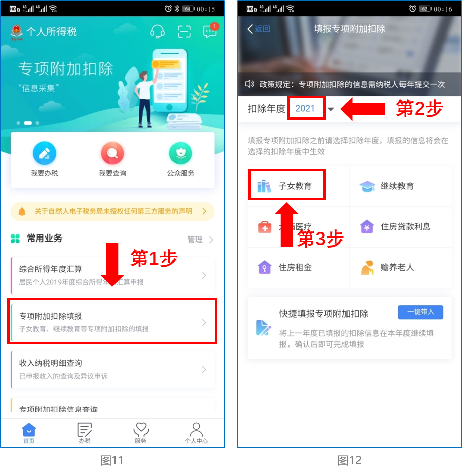直接選擇首頁的“專項附加扣除填報”。如上圖11、圖12。