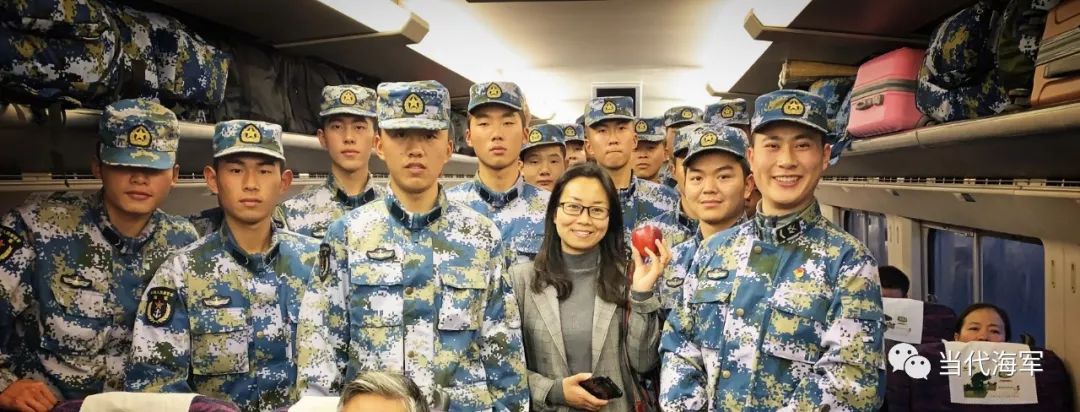 △戰士們與蘭女士合影丨一名新兵主動提出向蘭女士贈送蘋果。