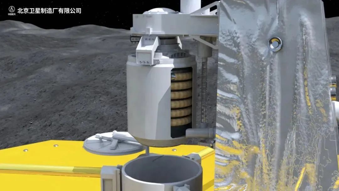 在月面工作階段,該系統根據預先設定的指令開始工作,先解除蓋體鎖定,讓蓋體豎直抬升、轉動一定角度,將容器口完全敞開;待所有樣品裝入容器後,蓋體原路返回,通過火工組件鎖緊並進行高真空密封。