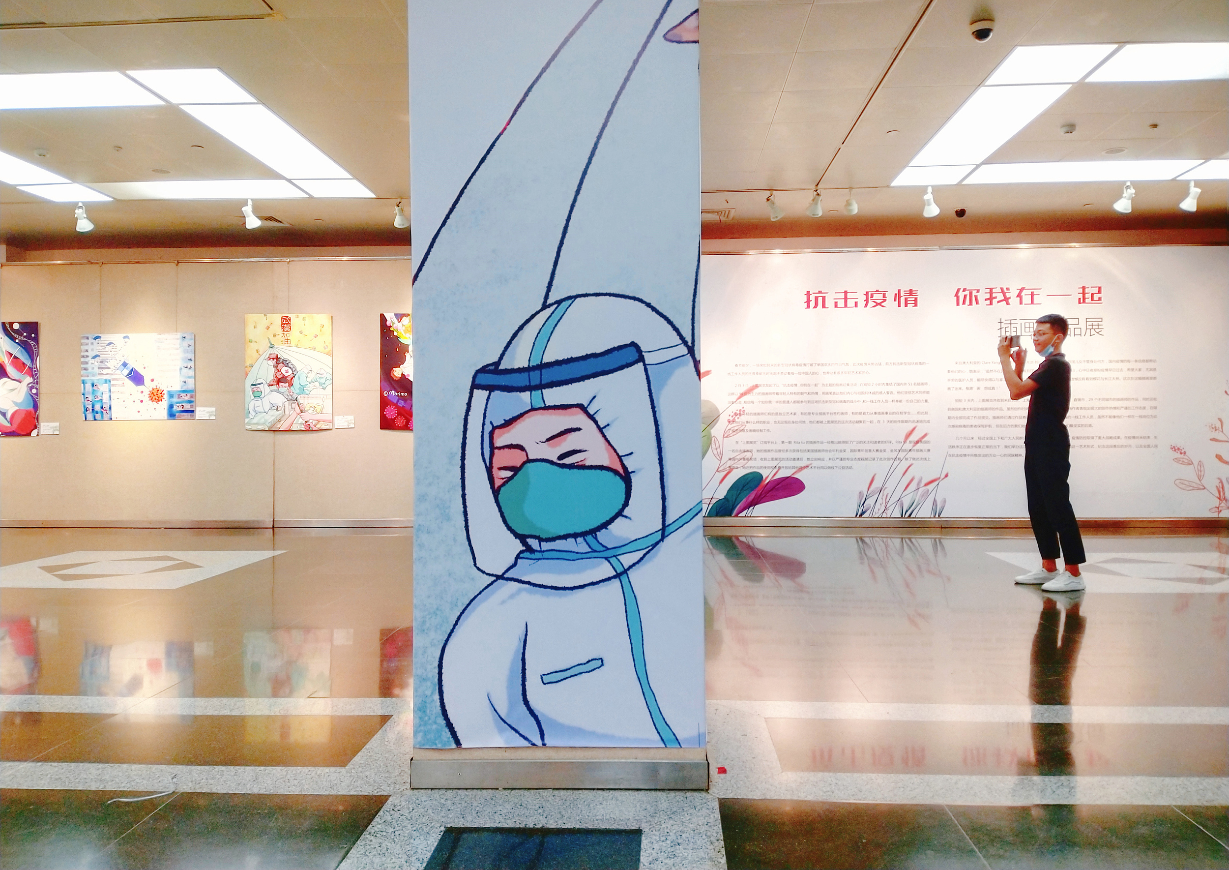 2020年7月21日,上海圖書館第二展廳舉辦“抗擊疫情,你我在一起”插畫展。人民視覺 資料圖