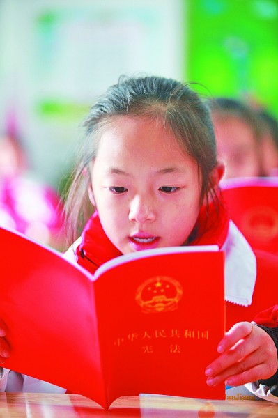 12月3日,江蘇省揚州市邗江實驗學校新盛分校的學生在誦讀憲法。在第七個“國家憲法日”來臨之際,各地學校開展憲法知識宣傳活動,通過憲法誦讀、憲法知識小課堂等形式,對學生進行憲法教育。新華社發