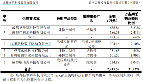 公開信息顯示,“成都飛機工業集團民機維修股份有限公司”是由成都飛機工業(集團)有限責任公司持股18%的參股公司,而成都飛機工業(集團)有限責任公司則是劉隨陽此前供職的單位,而且立航科技目前進行生產活動租用的廠房就位於中航工業成飛航空工業園。在此背景下,成飛集團並未被立航科技認定為關聯方。