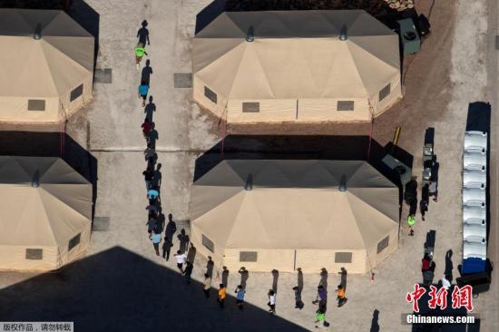資料圖:當地時間2018年6月19日,美國得克薩斯州厄爾巴索,移民兒童被安置在美墨邊境新建的帳篷內。