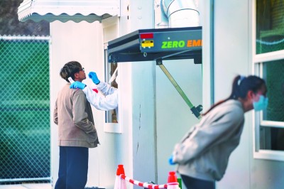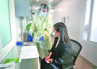 11月30日,在加拿大里士滿的温哥華國際機場,一名女子在新冠病毒快速檢測中心接受檢測。新華社發