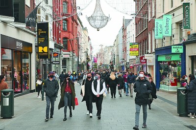 12月1日,人們走在愛爾蘭首都都柏林街頭。
