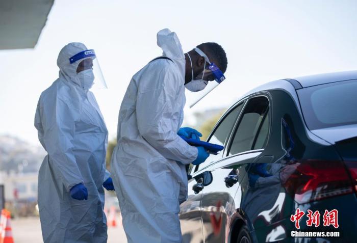 資料圖:當地時間12月1日,設立在美國加州舊金山Alemany農貿市場的“得來速”式新冠病毒檢測站向市民提供檢測服務。中新社記者 劉關關 攝