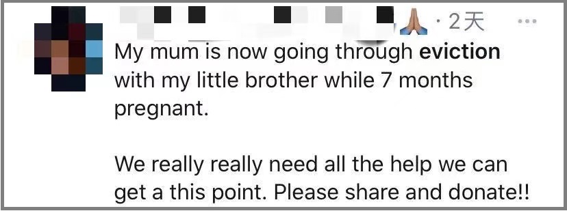 “我懷孕7個月的媽媽和我的弟弟將被驅逐,我們真的很需要幫助。”這是一網友在美國某社交平台上發出的求助帖。