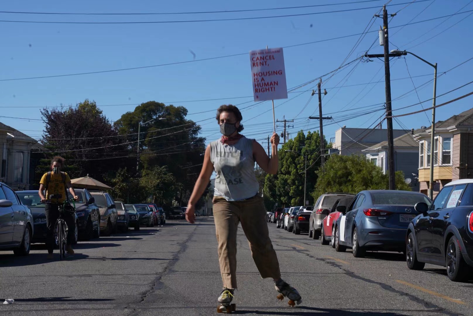 △在街頭手持“取消租金”牌子的美國人。(圖片來自社交媒體)