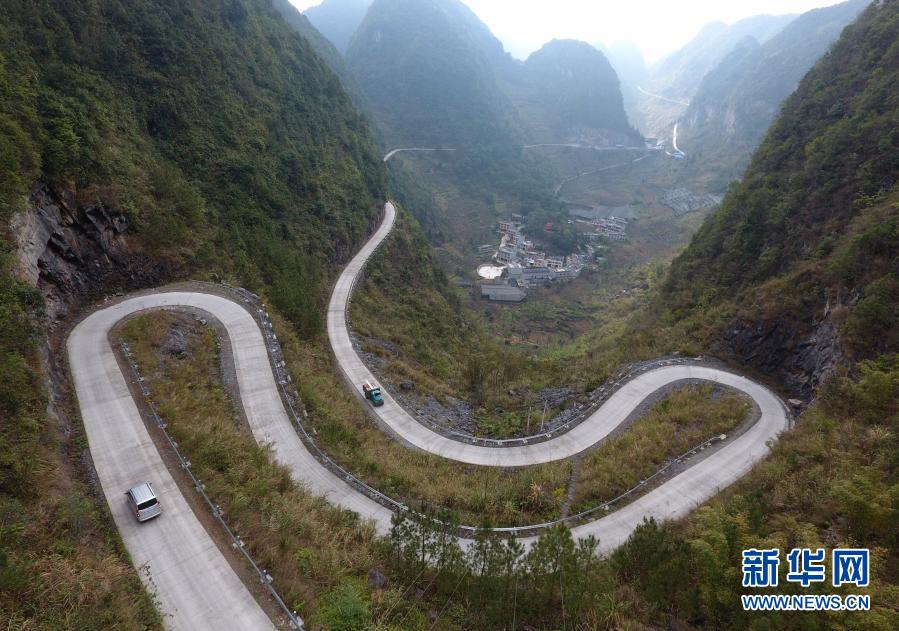 廣西百色市凌雲縣泗城鎮隴雅村境內的道路(2017年3月12日攝,無人機照片)。新華社記者 陸波岸 攝