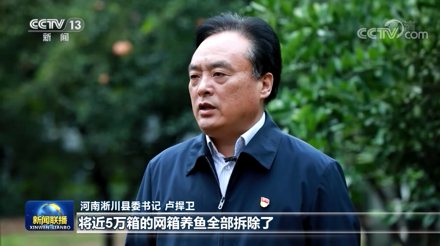 河南淅川縣委書記 盧捍衞: 350多家企業拆除了,將近5萬箱的網箱養魚全部拆除了。庫區周圍1公里範圍內、主要河道兩側500米以內都劃為禁養區。