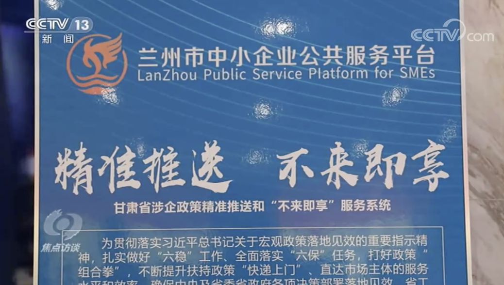 現在甘肅省涉企政策精準推送“政策庫”已涵蓋税務、人社、工信、市場監管等40多個部門和相關金融機構涉企政策文件,實現了對全省有關涉企優惠政策的全覆蓋;“企業庫”已納入41.9萬户企業,佔目前全省企業總數的92%,實現了對所有正常運行企業的全覆蓋,其中的中小微企業佔比達99.8%。企業只需要登錄“不來即享”服務系統,就可以瞭解到相關的税費減免、社保繳納、金融扶持等優惠政策,而為了政策更好落地,税務部門逐一對接落實。