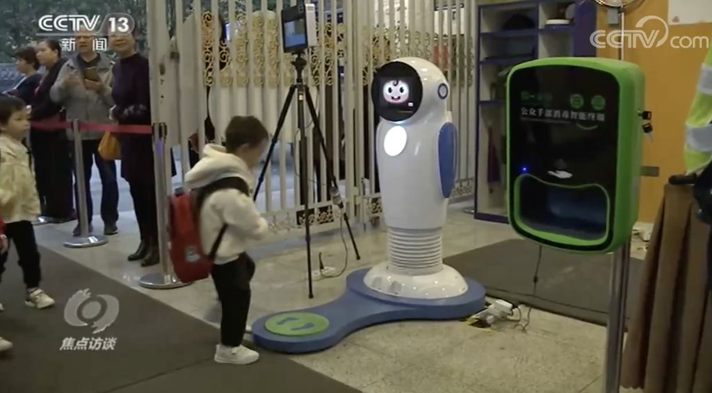 與小朋友打招呼的是一款名叫“小諾”的機器人,它每天早上在成都市金牛區機關第三幼兒園的門口,幫助小朋友完成入園晨檢。“小諾”的加入,讓以往單調地檢查更有趣味。