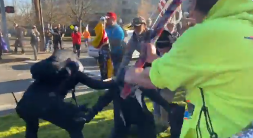RT:看,特朗普支持者在華盛頓州首府衝突中用美國國旗打Antifa示威者