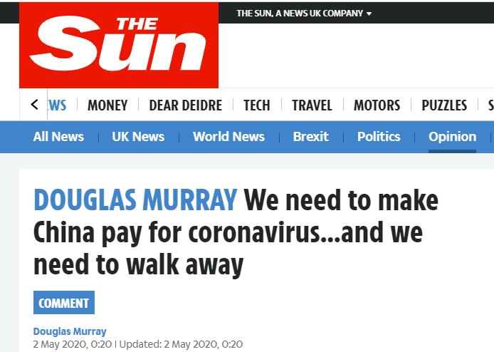 英國知名公知:我們應該派出炮艦,讓中國為疫情賠錢