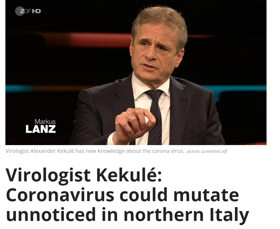 圖為德國病毒學專家Alexander Kekule不久前表示,雖然新冠疫情先出現在武漢,但全球疫情大流行的起點卻可能在意大利北部