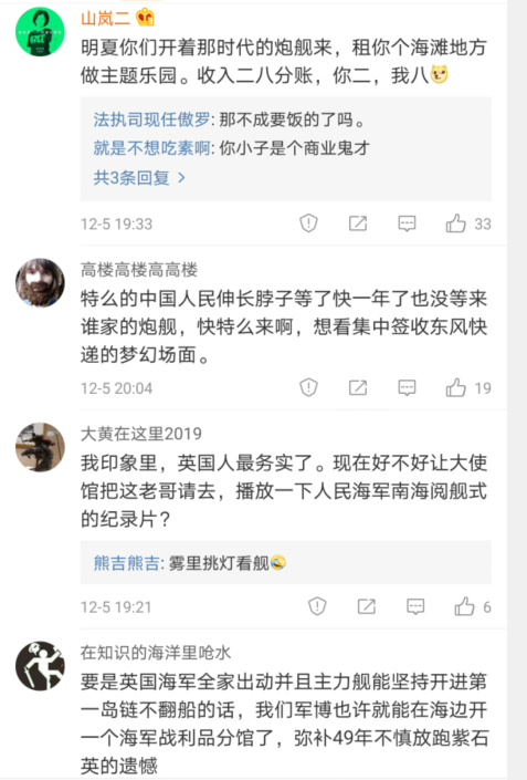 不過,令人感慨的是,雖然這個穆雷的言論在境外的社交網站“推特”上還獲得了不少英國乃至西方右翼分子的支持,但得知了他言論的中國網民卻並不生氣,反而心態輕鬆地表示“歡迎”英國的“炮艦”來中國“開展覽”。