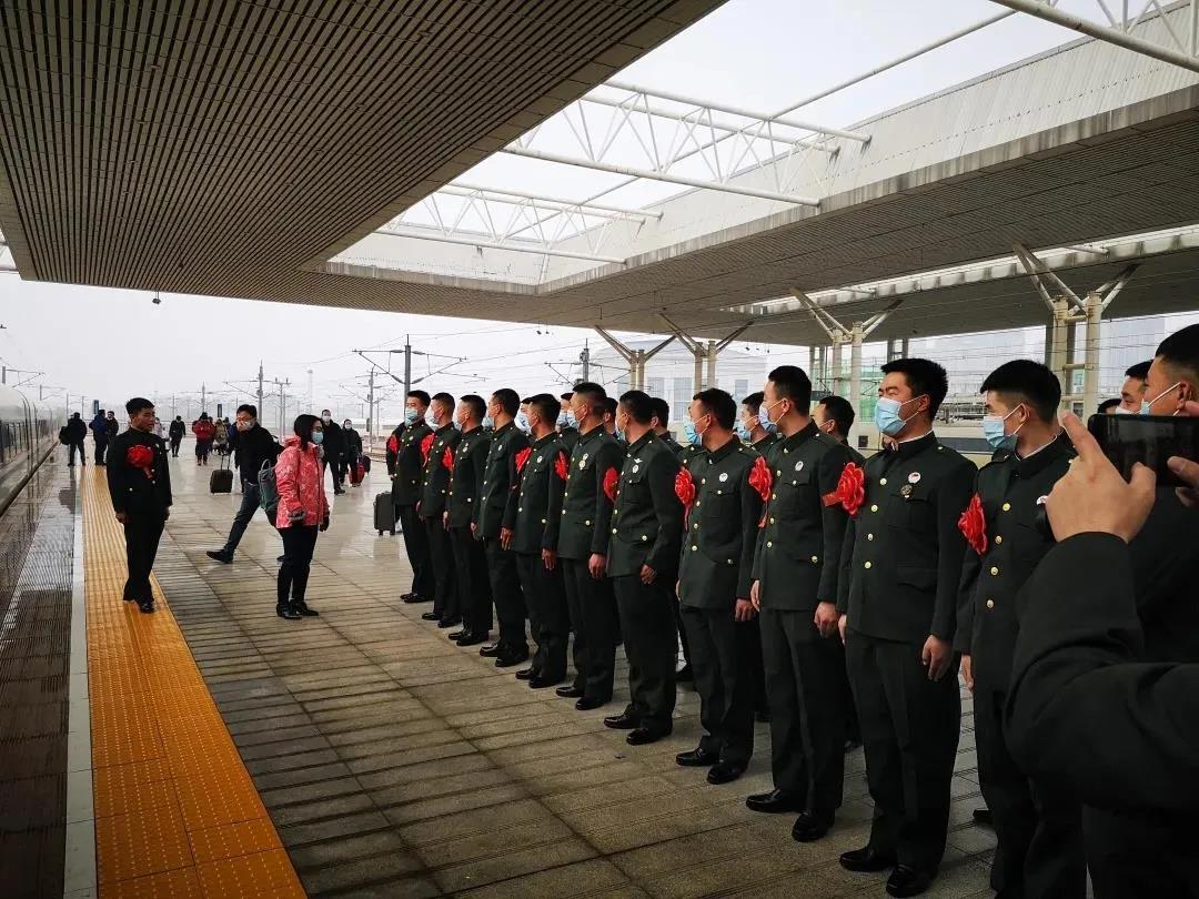 為了表達對閆冰的謝意,老兵們在微信羣裏商量後決定,當閆冰在洛陽龍門站下車時,以崇高的軍禮向閆冰致敬。於是就出現了網上熱傳的那段視頻和圖片:一排老兵在站台上整齊列隊,向熱心軍嫂致軍禮。